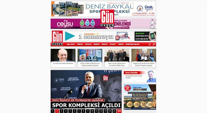 Muratpaşa Belediyesi Deniz Baykal Spor Kompleksi açılış töreni banneri Gün Haber'de yayınlanmış hali