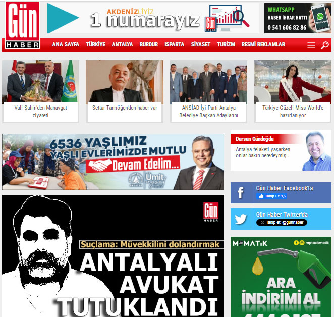 Muratpaşa Belediyesi 'Yaşlı evi' bannerinin Gün Haber'de yayınlanmış hali