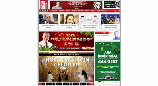 Muratpaşa Belediyesi Yeni Yıl ve Yeni Yıl Çarşısı reklamı Gün Haber'de yayınlanmış hali