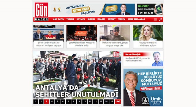 Muratpaşa Belediyesi'nin, "Hep birlikte güçlüyüz,komşuyuz, mutluyuz" banneri Gün Haber'de yayınlanmış hali