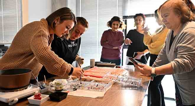 Dubai çikolata yapımını tamamlamasının ardından Eğitmen Kaçmaz, “Dubai çikolatası trend çikolata. Atölyemizde çikolata yapımını gösterirken aynı zamanda ısı derecelerini ve detaylı püf noktalarını göstererek katılımcılara faydalı bilgiler vermeye çalıştık” diye konuştu.