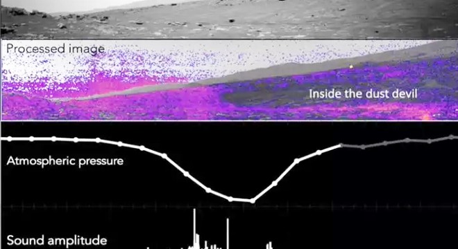 Mars gezegenindeki “toz şeytanı” adlı doğa olayının sesi, NASA’nın gözlem aracı Perseverance tarafından ilk defa kaydedildi.