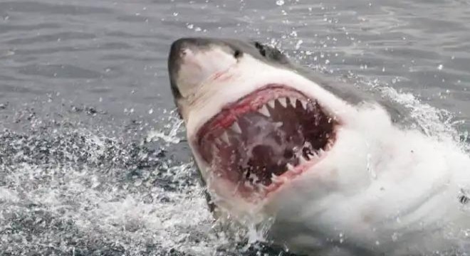 Sudaki 'v' şeklindeki akıntı bize doğru geldi ve bu kaplan köpekbalığı bota sıçrayıp ısırarak botta muazzam delikler açtı. Bütün bot patladı.