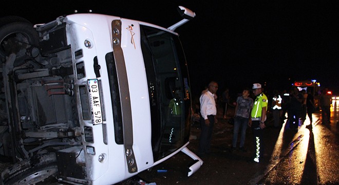 Kaza gece yarısı Süleyman Demirel Üniversitesi (SDÜ) kavşağında meydana geldi. Antalya’nın Manavgat ilçesine nişan töreni için giden ailenin kiraladığı İbrahim Göktepe yönetimindeki 03 AAF 578 plakalı midibüs, Afyonkarahisar’a dönüş yolunda sürücünün direksiyon kontrolünü yitirmesi sonucu Süleyman Demirel Üniversitesi (SDÜ) kavşağında devrildi. Yan yatan midibüs, metrelerce sürüklendikten sonra durabildi.
