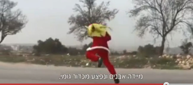 Noel Baba kıyafetli bir eylemci İsrail askerlerini taşlarken askerler tarafından ayağından vuruldu.