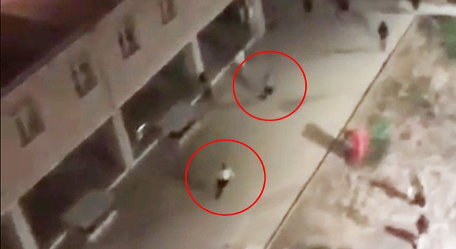 Bu arada olay, cep telefonu kamerasıyla görüntülendi. Görüntüde O.T.'nin, aşçı kıyafetli bir kişiyi kovaladığı görüldü. Çevredeki öğrencilerin korkuyla bağırdığı olaya güvenlik görevlileri müdahale ederken, "Sabaha çıkartmam seni. Sabah görmeyeceğim seni" diye bağrışlar duyuldu. Bir süre sonra O.T.'nin ikna edilerek uzaklaştırıldığı anlar da görüntülerde yer aldı.