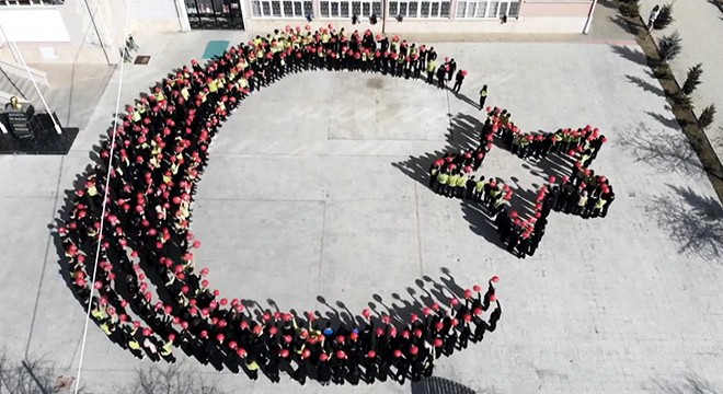 Öğrencilerin hazırladığı bu çalışma havadan da görüntülendi. Sosyal medyada paylaşılan video, beğeni topladı.