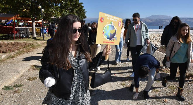 Eğirdir Belediye Başkanı Veli Gök'ün daveti üzerine ilçeye gelen öğrenciler, Eğirdir Belediyesi Liman Sosyal Tesisleri'nde bir araya geldi. Daha sonra ellerine eldiven giyen ve çöp poşeti alan öğrenciler göl kenarlarını temizledi. Etkinliğe katılan SDÜ Hukuk ve Adalet Topluluğu Başkanı Doğaç Mert Uluer, "Dünya İklim Değişikliği haftası içerisindeyiz. İklim değişikliğinin çok bariz olduğu ülkelerden birisinde yaşıyoruz. Gönül isterdi ki bu iklim değişikliğinden çok etkilenmeyelim ama ne yazık ki insanlığın belli bir tüketim hacmini aştığı için bu duruma geldik. Öğrenci arkadaşlarımızla gerçektleştirdiğimiz etkinlikte 'doğa hepimizin, doğayı yaşatmak için hepimiz uğraşalım' çağrısında bulunuyoruz" dedi.
