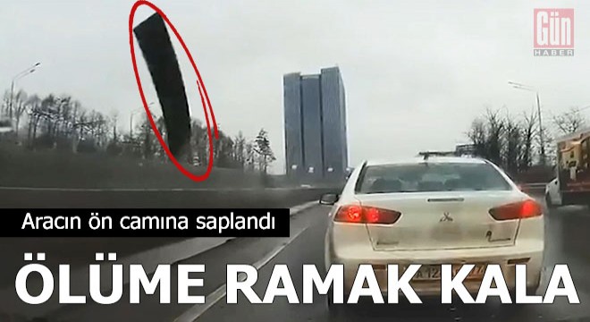 Olay, Rusya’nın başkenti Moskova’daki bir otoyolda meydana geldi. Trafiğin yoğun olduğu saatlerde otoyolda ilerleyen bir otomobilin ön camına, karşı şeritten uçan bir metal levha saplandı. Araç kamerasınca kaydedilen görüntülerde, yaklaşık 50 santimetre uzunluğunda metal bir levhanın sertçe aracın ön camına çarptığı ve levhanın yarısının camı kırarak aracın içerisine girdiği görüldü. Olay yerine gelen trafik ekipleri, levhanın karşı şeride nasıl fırladığına ilişkin inceleme başlatırken; yerel medya, olayda sürücünün yara almadığını bildirdi.