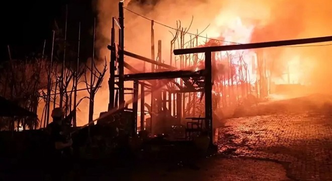 Çamçukur Mahallesi'ndeki Nihal ve Erkan Erdem çiftine ait 3 katlı ahşap otelde kapalı olduğu sırada henüz bilinmeyen nedenle yangın çıktı. Büyüyen alevler otelin bahçesindeki kovboy kasabasına da sıçradı. Çevredekilerin ihbarıyla bölgeye itfaiye ekipleri sevk edildi.