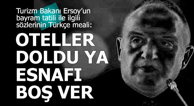 Kültür ve Turizm Bakanı Mehmet Ersoy, Bodrum’da katıldığı 17. Uluslararası Bodrum Bale Festivali'nin açılışında gazetecilere yaptığı açıklamada, Kurban bayramı tatilinin ile ilgili bir soruya, "Zaten yerlerin çoğu da dolu” diyerek şunları söyledi: