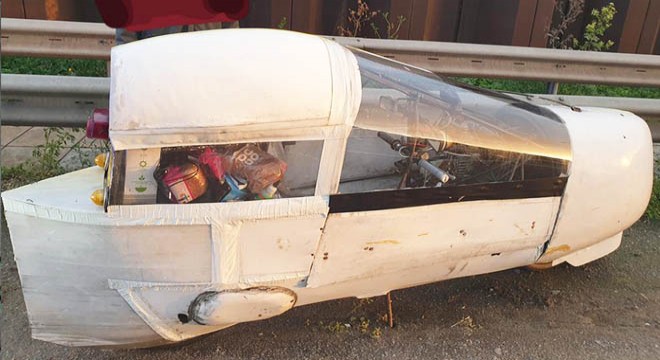 İngiltere’deki Bedfordshire polisi M25 otobanında hareket halindeki el yapımı motosikleti görünce büyük şaşkınlık yaşadı. Bütün kontrolleri yapılan motosiklete, yola çıkmasında herhangi bir kusur olmaması nedeniyle de herhangi bir ceza uygulanmadı.