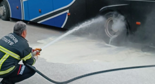 Burdur Otogarı'na giren otobüsün, yolcular indirildikten sonra arka sol lastiklerinden duman yükselmeye başladı. İlk olarak otobüsteki yangın söndürme cihazı ile yapılan müdahalenin ardından görenlerin haber vermesi üzerine olay yerine itfaiye ekibi sevk edildi. Gelen itfaiye ekibi, yanan balataya müdahale ederek söndürdü. Otobüs bir süre sonra yoluna devam etti.