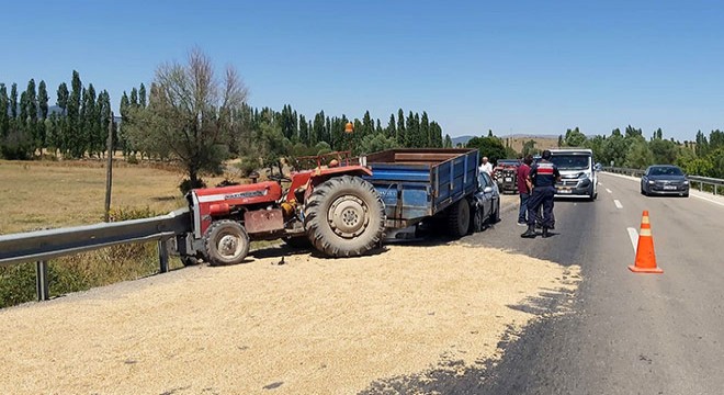 Otomobil ve traktör çekici yardımı ile otoparka götürülürken, traktör şoförü İbrahim Namlı ifadesi alınmak üzere karakola götürüldü.