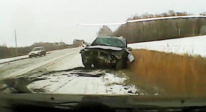 Kaza, Rusya'nın Omsk şehri yakınlarındaki bir otoyolda meydana geldi. Kar yağışı nedeniyle buz tutmuş yolda ilerleyen otomobil, kontrolden çıkarak karşı şeritten gelen bir ciple kafa kafaya çarpıştı. Kaza anları saniye saniye başka bir aracın araç içi kamerasınca kaydedilirken, otomobilin sürücüsünün ve yanındaki yolcunun kaza yerinde yaşamını yitirdiği, cipte bulunan 6 kişinin de yaralandığı belirtildi.
