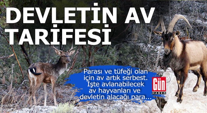 DKMP'nin 2024-2025 Av Yılı Av Turizmi Uygulama Talimatı Ek Kararı ile avına izin verilen tür, cinsiyet, avlanma dönemi ve avlanma şekilleri de yayımlandı. Avına izin verilen yaban hayvanı türleri yaban keçisi, melez yaban koyunu, hatalı boynuzlu şelek yaban keçisi, Anadolu yaban koyunu, kızıl geyik, çengel boynuzlu dağ keçisi. 1 Eylül'de başlayan av tarihleri türe göre aralık, şubat ve mart aylarına kadar sürecek. Kararda, Anadolu yaban koyunu, yaban keçisi ve kızıl geyik türlerinin erkek bireyleri ile çengel boynuzlu dağ keçisinin dişi ve erkek bireylerinin avlanabileceği belirtiliyor. Türler için avlanma izin ücreti her bir kota için 3'er bin TL, Anadolu yaban koyunu için 8 bin TL.