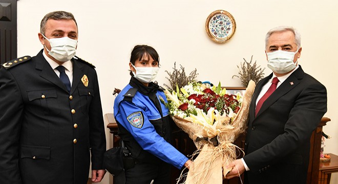 İl Emniyet Müdürü Ahmet Metin Turanlı ve beraberindeki emniyet mensupları Polis Teşkilatı'nın 177'nci kuruluş yıl dönümünü dolaysısıyla Vali Ömer Seymenoğlu'nu ziyaret etti. Vali Seymenoğlu, İl Emniyet Müdürlüğümüzün ilçeler de dahil olmak üzere tüm kadrolarında çalışan arkadaşlarımızın bu güzel gününü tebrik ediyorum" dedi. İl Emniyet Müdürü Ahmet Metin Turanlı da Vali Seymenoğlu'na teşekkür ederek, Polis Haftası dolayısıyla yapılan etkinlikler hakkında bilgi verdi.