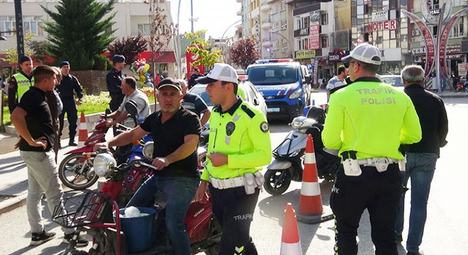 15 Temmuz Demokrasi Meydanı'nda İlçe Emniyet Müdürlüğü, Jandarma Komutanlığı ve Bölge Trafik ekipleri tarafından düzenlenen denetimlerde durdurulan motosiklet sürücülerinin evrak, kask ve trafiğe uygunluğu denetlendi. Yaklaşık 4 saat süren denetimde 63 motosiklet sürücüsüne 85 bin lira ceza uygulandı. İlçede huzur ve güvenliğin sağlanması ve kazalarının önlenmesi, sürücülerin trafik kurallarına, yasaklarına ve kısıtlamalarına uygun motosiklet kullanmaya yöneltilmesi amacıyla yürütülen denetimlerde 120 motosiklet denetlendi. Trafiğe uygun olmayan 12 motosiklet ise trafikten men edilerek çekici yardımı ile otoparka çekildi.