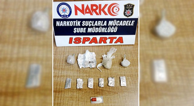 Isparta'da Sav beldesi uygulama noktasına gelmeden tali yola giren araç polisin şüphesi üzerine durduruldu. 4 şüphelinin üzerinde ve araçta yapılan aramada 2 paket halinde 4.2 gram eroin maddesi, 2.2 gram eroin maddesi, 6 paket halinde 1.6 gram eroin maddesi ve 3 gram eroin maddesi ele geçirildi. Şüpheliler R.A., T.Y., Ö.C. ve İ.G. hakkında 'uyuşturucu madde bulundurmak ve kullanmak' suçundan işlem yapıldı.