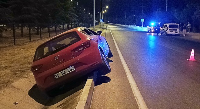 Burdur- Antalya çevre yolu Mehmet Akif Ersoy Mahallesi yakınlarında 00.00 sıralarında meydana gelen kazada Batuhan A. yönetimindeki 15 BA 252 plakalı otomobil sürücünün direksiyon hakimiyetini kaybetmesi sonucu refüje girdi. Otomobil sürücüsünün yara almadığı kazada Bilge A. hafif yaralandı. Ambulansla Burdur Devlet Hastanesi'ne götürülen yaralı tedaviye alındı. Polisin yaptığı kontrolde 1,19 promil alkollü çıkan otomobil sürücüsünün ehliyetine 6 ay süreyle el konulurken çeşitli maddelerden de trafik para cezası uygulandı.