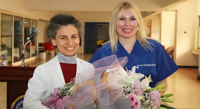 Rektör Özkan, hastane çalışanı Necibe Evrim Tongül'e günün anısına çiçek takdim etti. Rektör Özkan daha sonra katılımcılarla bir süre sohbet etti.