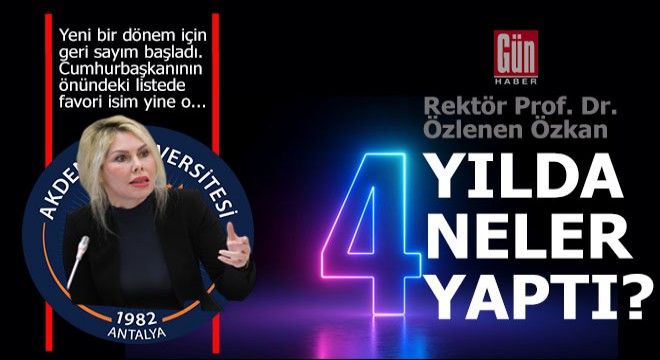 Borçlarla anılan üniversite hastanesinin borçlarının ödenmesi, yıllardır devam eden otopark sorununun çözülmesi gibi çözüm odaklı yönetim anlayışının yanı sıra İleri Sağlık Araştırma Merkezi gibi vizyoner projelerin de liderliğini yapan Akdeniz Üniversitesi Rektörü Prof. Dr. Özlenen Özkan görev yaptığı 4 yılı değerlendirdi. Rektör Prof. Dr. Özlenen Özkan öncülüğünde yürütülen çalışmalarla eğitimden bilimsel araştırmalara, sağlıktan toplumsal hizmete birçok alanda adından söz ettiren Akdeniz Üniversitesi küresel sıralamalarda da yükselişe geçti.