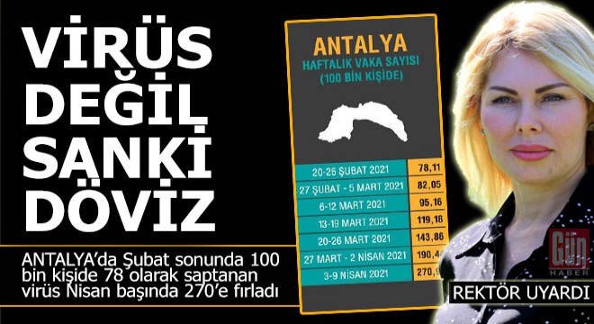 Akdeniz Üniversitesi Rektörü Prof. Dr. Özlenen Özkan'da, tıpkı döviz kuru gibi giderek artan virüs tablosunu paylaştı ve şu uyarıda bulundu: