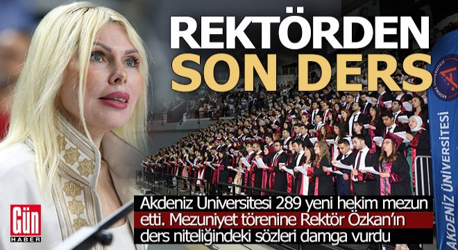 Akdeniz Üniversitesi Rektörü Prof. Dr. Özlenen Özkan, "Bugün Akdeniz'in güneşi gibi parlayan 289 pırıl pırıl hekimi Türk sağlık sistemine kazandırmanın sevincini yaşıyoruz. Mutluyuz. Gururluyuz. Hep birlikte, bu büyük başarının başından sonuna tanıklarıyız. Tıbbın özünde yalnızca bilgi değil, aynı zamanda insanlık vardır. Bugün sizlere verdiğimiz en büyük miras; vicdanınız, merhametiniz ve insan sevgisidir" diye konuştu.
