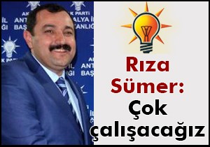 SÜMER'DEN TEŞEKKÜR "Beni böylesi önemli bir göreve layık gören başta Başbakanımız sayın Ahmet Davutoğlu olmak üzere, görevi devraldığım Mustafa Köse'ye, delegelerimize ve üyelerimize tekrar tekrar teşekkür ediyorum" diyerek sözlerine başlayan Rıza Sümer, Antalya'da 225 bin olan üye sayısını önümüzdeki genel seçimlere kadar 300 bine çıkarmayı ilk hedef olarak belirlediklerini kaydetti. Rıza Sümer, "Bu hedef doğrultusunda bugüne kadar olduğu gibi bundan sonra da gece demeden gündüz demeden, yağmur demeden kar demeden 19 ilçemizde çalışacağız" dedi.
