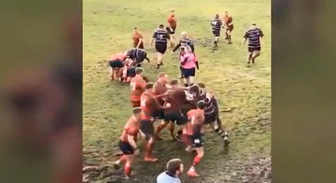 İngiltere'nin Galler bölgesinde Cambrian Rugby ve Treorchy Rugby futbol kulüpleri arasında oynanan müsabaka sırasında takımlar arasında arbede çıktı. O anlar, maçtaki bir seyirci tarafından kayda alındı. Hakem durumu kontrol altına almak için düdük çalsa da sahada kavga eden oyuncuların bunu fark etmeyerek, kavgaya devam ettiği görüldü. Seyircilere çok yakın mesafede çıkan arbede bir süre sonra sona erdi.