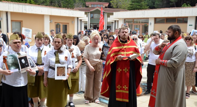 İkinci Dünya Savaşı'ndan kalan fotoğraf sergisinin açılışı ile başlayan program anma etkinliğiyle devam etti. Rusya Milli Marşı ve İstiklal Marşı'nın okunmasının ardından konuşan Rusya Federasyonu Antalya Başkonsolosu Sergey Vetrik, "79 yıl önce tarihin en korkunç savaşını kazandık. Bu zafer halkımızı esaretten kurtardı. Avrupa'yı özgürleştirdi. Tüm insanlığa hayat verdi. Savaş sırasında Nazi soykırımının kurbanı olan 27 milyon Sovyet vatandaşı hayatını kaybetti. Bugün Rusya, Belarus, Kazakistan, Kırgızistan ve Özbekistan bağımsız federasyon ülkelerinin Antalya'daki tüm konsolosluk başkanları burada. Aynı zamanda Antalya, Azerbaycan ve eski Sovyetler Birliği'ndeki tüm paydaşlar burada. Bugün programımıza katılan karma aileler için bugünkü program, tarihimizi onurlandırıyor. Bu büyük zafer için hayatlarını feda eden dedelerimiz ve büyük dedelerimizin anısını saygıyla anıyoruz. Bu büyük zaferin ne pahasına elde edildiği hepimize ebedi bir hatırlatmadır. Korkunç trajedinin tekrarlanmasını önlemek için elimizden geleni yapmak bizim görevimizdir" dedi.