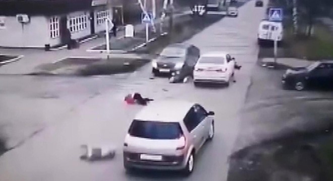 Kaza, Rusya’ya bağlı Çuvaşistan Cumhuriyeti’nin Alatır şehrinde meydana geldi. Kazaya dair güvenlik kamerasına yansıyan görüntülerde, yaşlı 3 kişinin yaya geçidinden yolun karşısına geçtiği görülüyor. Sağ şeritten giden araç yayalara yol vermek için dururken, sol şeritten gelen bir araç 3 kişiye çarpıyor. Yaşlı 3 kişi çarpmanın etkisiyle yolun farklı taraflarına savruluyor. Kaza sonrası trafikteki diğer araçların sürücüleri ve çevredekiler yerde yatan kazazedelerin yardımına koşuyor.