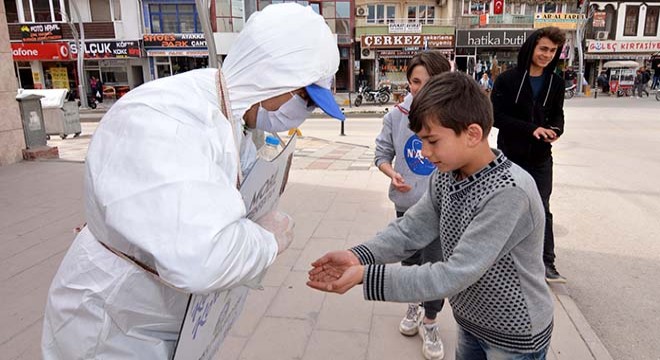 Sandıklı'da koronavirüs tedbirleri kapsamında bankalar, pazar yerleri, alışveriş merkezleri ve resmi kurumlar gibi vatandaşların kalabalık olarak bulunduğu ortamlarda virüs bulaşma riskini önlemek amacıyla belediye tarafından mobil dezenfektan uygulaması başlatıldı. Korunaklı kıyafet ve maske takan bir belediye görevlisi, boynuna astığı üzerinde uyarı yazılarının bulunduğu levhayla çarşı pazar dolaşıp, vatandaşa dezenfektan kullandırdı.