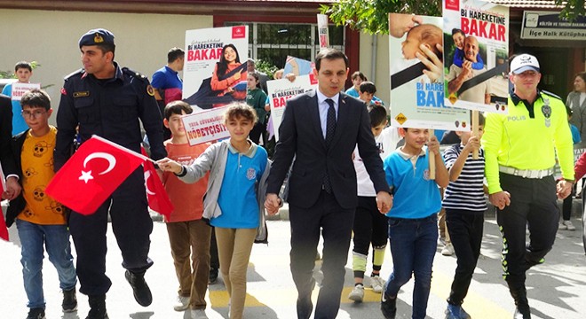 Jandarma ve polis tarafından Kütüphane kavşağında 'Yayalara öncelik duruşu, hayata saygı duruşu' etkinliği düzenlendi. Etkinliğe Kaymakam Mehmet Sülün, Jandarma Komutanı Üsteğmen Alptuğ Ayhan, Emniyet Müdürü Bayram Öğüt, Bölge Trafik Amiri Komiser Yardımcısı Onur Kaya, polis, jandarma ekipleri ve Cumhuriyet Ortaokulu öğrencileri katıldı. Trafikte yaya önceliğine dikkati çekmek ve sürücü duyarlılığını artırmak, trafik kazalarından kaynaklı can kayıplarının yüzde 50 oranında azaltılması hedefi doğrultusunda yapılan etkinliğe kapsamında öğrenciler ellerindeki 'Yayalar kımızı çizgimiz', 'Öncelik yayanın öncelik hayatın', 'Bir hareketine bakar' dövizlerle katıldı. Yine öğrenciler jandarma ve polis eşliğinde araçları durdurarak sürücüleri yaya önceliği hakkında uyararak trafik kuralları hakkında bilgiler verdi. Etkinliğe katılan Kaymakam Mehmet Sülün de öğrencilerle birlikte yaya yolunu kullandı.