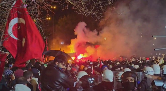 İstanbul Cumhuriyet Başsavcılığınca başlatılan İBB'ye yönelik 'Yolsuzluk' soruşturması kapsamında İBB Başkanı Ekrem İmamoğlu'nun tutuklanmasını protesto amacıyla Saraçhane'de Bozdoğan Kemeri önünde toplanan grup, güvenlik önlemi alan polis ekiplerine taş, meşale, şişe ve yanıcı madde attı. Yürümek isteyen grup ile polis ekipleri arasında zaman zaman arbede yaşandı. Polis ekipleri göstericilere dağılmaları yönünde uyarıda bulundu. Polis, uyarıları dikkate almayan gruba biber gazı kullanarak müdahale etti.
