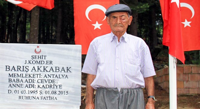 Mardin'in Midyat ilçesi Düzoba köyü mevkisinde 1 Ağustos 2015 tarihinde şehit olan Jandarma Komando Er Barış Akkabak'ın Serik'te yaşayan dedesi Ramazan Akkabak, yaklaşık 1 aydır tedavi gördüğü Kepez Devlet Hastanesi'nde yaşamını yitirdi. Akkabak'ın cenazesinin bugün öğle vakti Serik ilçesi Kozan Mahallesi Gökveliler mezarlığında torunu Şehit Barış Akkabak'ın mezarının yanında toprağa verileceği öğrenildi. Dede Ramazan Akkabak, çocuk yaşta annesi vefat eden Şehit Barış Akkabak'ı büyütmüştü. Gözünden rahatsızlığı bulunan Ramazan Akkabak dönemin Dışişleri Bakanı Mevlüt Çavuşoğlu tarafından tedavi ettirilmişti.