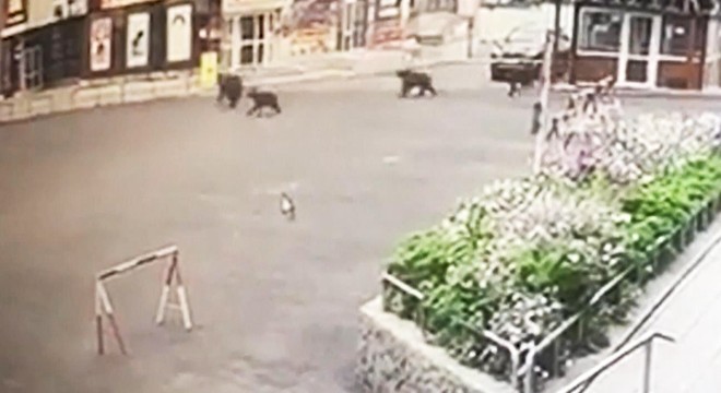 Şehre inen ayı ve yavrularını polis kovaladı (DHA)