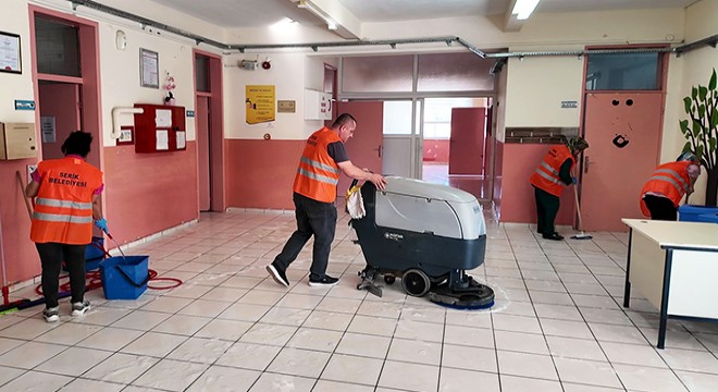 Serik Belediyesi Temizlik İşleri Müdürlüğü ekipleri, Gedik Ortaokulu'nda temizlik çalışması gerçekleştirdi. Okul aile birliği ve velilerin talebi üzerine sınıflar, koridorlar, tuvaletler ve okul bahçesi detaylı şekilde temizlendi.