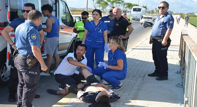 Kaza, dün saat 17.30 sıralarında Serik- Belek yolunda meydana geldi. Sercan Aydın ile Emre Gökoğlu'nun bulunduğu plakasız motosiklet kontrolden çıkarak yol kenarına savruldu. Asfalt zemine düşen Sercan Aydın ve Emre Gökoğlu yaralanırken, kazayı görenler ihbarı üzerine olay yerine polis ve sağlık ekipleri sevk edildi. İlk müdahaleleri yapılan yaralılar ambulansla hastaneye götürüldü. Yaralıların durumunun iyi olduğu öğrenildi. (DHA)