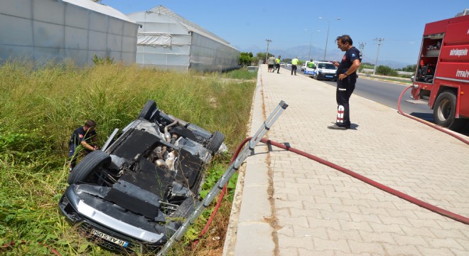 Kaza, saat 13.00 sıralarında Serik- Belek yolu Eminceler mevkiinde meydana geldi. Batuhan Erbay (25) idaresindeki 16 AES 050 plakalı otomobil, sürücünün direksiyon hakimiyetini kaybetmesi sonucu virajı alamayarak yolun sağında bulunan 3 metre yükseklikteki şarampole devrildi. Ters vaziyette duran otomobilde sürücü Batuhan Erbay ile araçta bulunan Yusuf Pakır (21) ve Nurdane Pakır (17) yaralandı. İhbar üzerine olay yerine sağlık, itfaiye ve polis ekipleri sevk edildi. Otomobilde sıkışan yaralılar sağlık ve itfaiye ekiplerinin yardımıyla kurtarıldıktan sonra ambulansla Serik Devlet Hastanesi'ne götürüldü. Yaralıların sağlık durumunun iyi olduğu öğrenildi. Polis kazayla ilgili inceleme başlattı. (DHA)