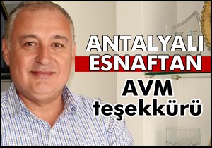 ANTALYA Esnaf ve Sanatkârlar Odaları Birliği (AESOB) Başkanı Abdullah Sevimçok, Antalya gündemini sık sık meşgul eden ve kamuoyunda Konuksever AVM olarak bilinen 1/25 binlik Nazım İmar planı değişikliğini uygun gören komisyon kararının uygulanması adına yapılan oylamada ret oyu kullanarak yeni bir AVM'ye daha izin vermeyen herkese teşekkür etti.