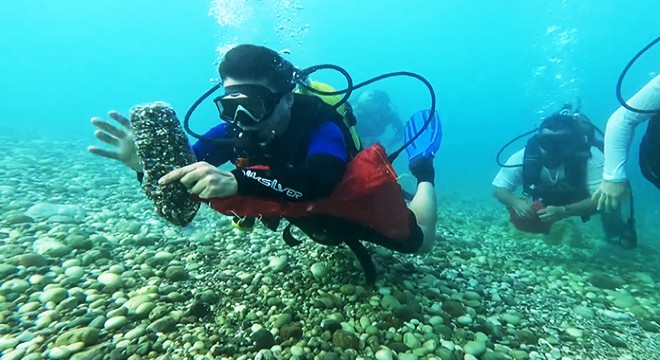 Akdeniz Üniversitesi Su Ürünleri Fakültesi'nden Prof. Dr. Mehmet Gökoğlu ve öğrencilerden oluşan su altı topluluğu denizlerdeki kirliliğe dikkati çekmek için dalış yaptı. Konyaaltı Sahili'nde 'deniz ve kıyı kirliliği farkındalığı' adını verdikleri dalışta deniz dibinde çok sayıda çöp ve atıkla karşılaşıldı. Yanlarında getirdikleri çöp torbalarıyla dalış yapan öğrenciler, su altında içerisine taş ve plastik atık sıkıştırılmış plastik şişeler, içerisi taş dolu kırık boya kovası ve içerisine yine taş doldurulan plastik poşetler dikkati çekti.