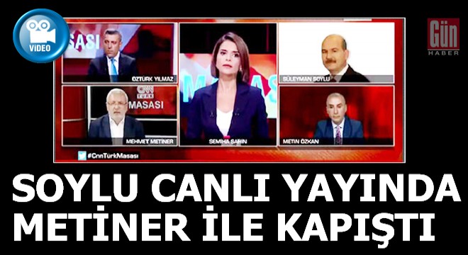 İçişleri Bakanı Süleyman Soylu ile AKP'li eski milletvekili Mehmet Metiner, CNN Türk canlı yayınında kapıştı. Soylu'nun "Konuşmanıza müsaade etmiyorum" sözlerine Metiner'in "Sizden müsaade istemiyorum. Siz müsaade makamı değilsiniz" şeklindeki yanıtı geceye damgasını vurdu.