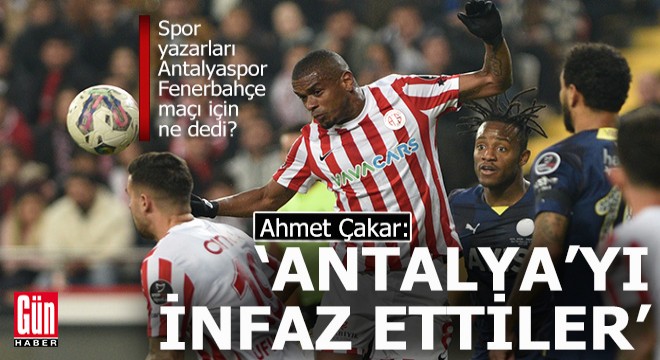 AHMET ÇAKAR: Fenerbahçe, direkten dönen topları ile haklı bir galibiyet aldı ama futbol bu ya… O çok kötü oynayan Antalyaspor aslında bir puan almıştı. Hak etmese de almıştı. Ama maalesef hakemler izin vermedi. Ayrıca VAR yardımıyla verilen penaltı doğru karar ve yine Rossi'nin attığı golde de Batshuayi'nin faulünü görmedim. [SABAH]
