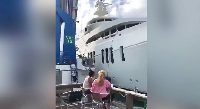 Karayipler’de bir süper yat, bir köprüyü geçmeye çalıştığı sırada köprü ayağı ve güvenlik kulübesine çarptı. Kafenin hemen yanında meydana gelen kaza sonrası herkes kaçarken, 2 kadının hiçbir şeyi umursamadan içeceklerini yudumlamaya devam etmeleri sosyal medyada kazadan daha çok konuşuldu.