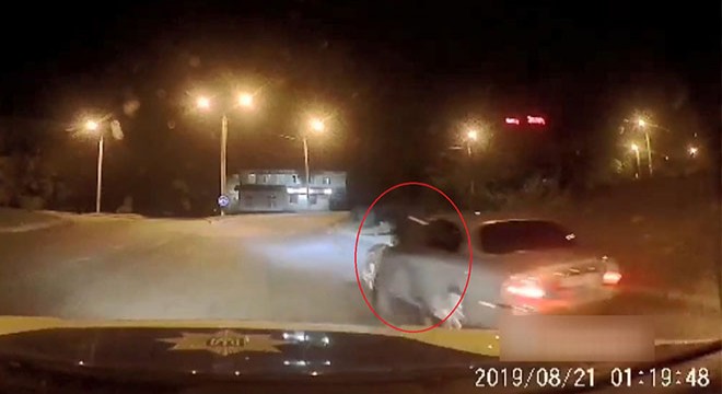 Olay, Ukrayna’nın Dnipropetrovsk bölgesinde meydana geldi. Polis çevirmesinde durdurulan sürücü, polisle konuştuğu sırada aniden gaza bastı. Kaçan sürücünün otomobilinin kapısına tutunan polis, yolda metrelerce sürüklendi. Polisin, olayda hafif yaralandığı belirtilirken; gözaltına alınan sürücünün 3 yıla kadar hapis cezası ile karşı karşıya olduğu bildirildi.