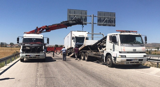 Kaza, dün saat 02.30 sıralarında Afyonkarahisar- Antalya karayolu Dinar ilçesi girişinde meydana geldi. Ömer Can kullandığı 32 ACF 834 plakalı TIR'ın direksiyon hakimiyetini kaybedip, kavşaktaki bariyerlere, sonrasında da yön levhası direğine çarptı. Sürücü Ömer Can kazayı yara almadan atlattı. Kaza yerine gelen polis güvenlik tedbiri alıp yolu kısa süreli ulaşıma kapattı. TIR'ın kaldırılmasının ardından yol araç geçişine açıldı.