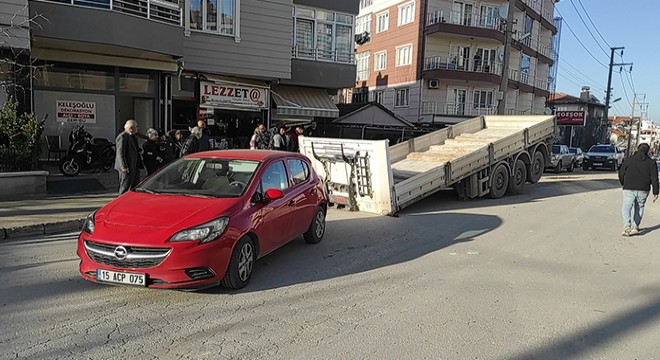 Şirinevler Mahalesi Boyacıoğlu Caddesi'nde Mustafa Ali P.'nin (44) kullandığı 15 AAR 111 plakalı TIR'ın dorsesi, seyir halindeyken henüz bilinmeyen nedenle bağlantı yerlerinden ayrıldı. Sürüklenen dorse, park halindeki 15 ACP 075 plakalı otomobile çarptı. Kazada, kasapta alışveriş yapan annesini otomobilde bekleyen B.T. hafif yaralandı. Sağlık ekipleri B.T.'yi Burdur Devlet Hastanesi'ne götürdü.