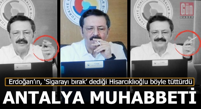 Hisarcıklıoğlu, bugün sosyal medya hesaplarından hem TOBB Yönetim Kurulu, hem de Antalya Ticaret ve Sanayi Odası’nın (ATSO) Meclis toplantısına katıldığına ilişkin paylaşım yaptı. “İş insanlarımızla sektörlerdeki durumu ve ekonomide yaşanan sorunları konuştuk. Kamu idaresine ve ilgili kurumlara iletmek üzere çözüm önerilerini istişare ettik” diye paylaşım yapan TOBB Başkanı Hisarcıklıoğlu’nun toplantı sırasında sigara içmesi dikkat çekti.