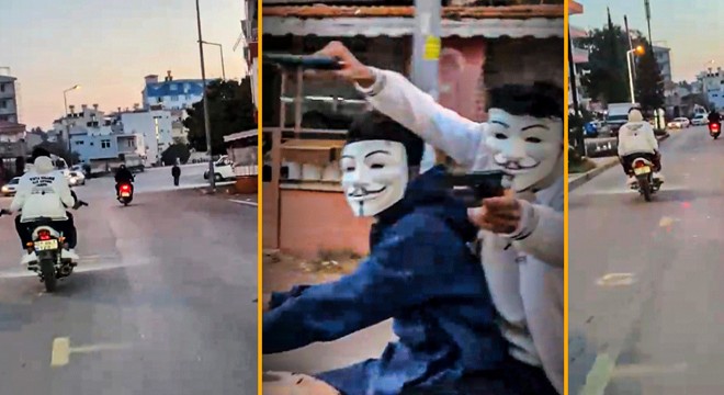Serik ilçesi Merkez Mahallesi Salı Pazarı civarında dün akşam saatlerinde motosiklet üzerinde, yüzlerinde maske bulunan iki gençten arkada oturan, seyir halindeyken iki elindeki iki tabancayla, yol güzergahındaki sürücü ve vatandaşlara doğrultup korku dolu anlar yaşattı. Diğer motosiklet üzerindeki arkadaşları cep telefonuyla o anları kaydetti.